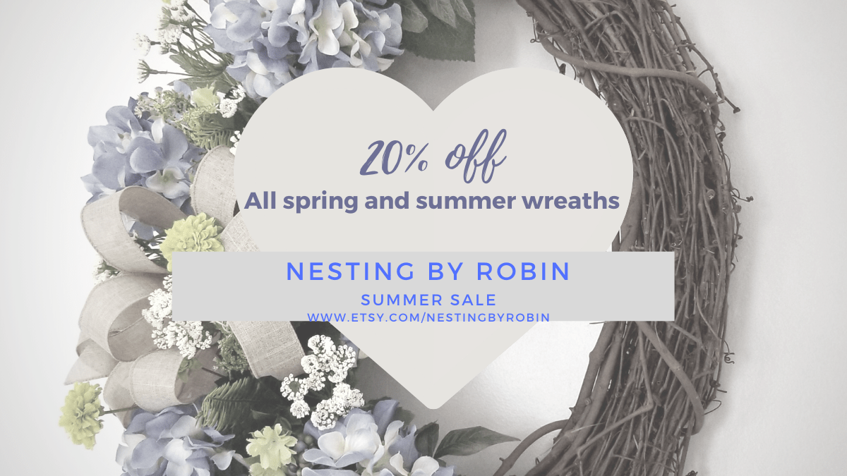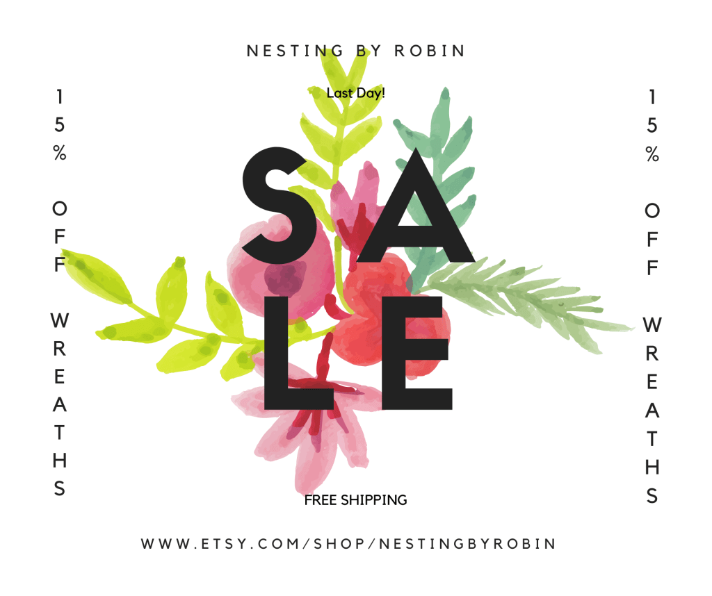 Now let’s take a look at what’s going on in Nesting By Robin’s Etsy shop. Valentine’s Day is coming soon and my shop’s inventory is down to three wreaths for the holiday. There is also an Easter sale going on until January 31st. The best news is everything is ready to ship today!