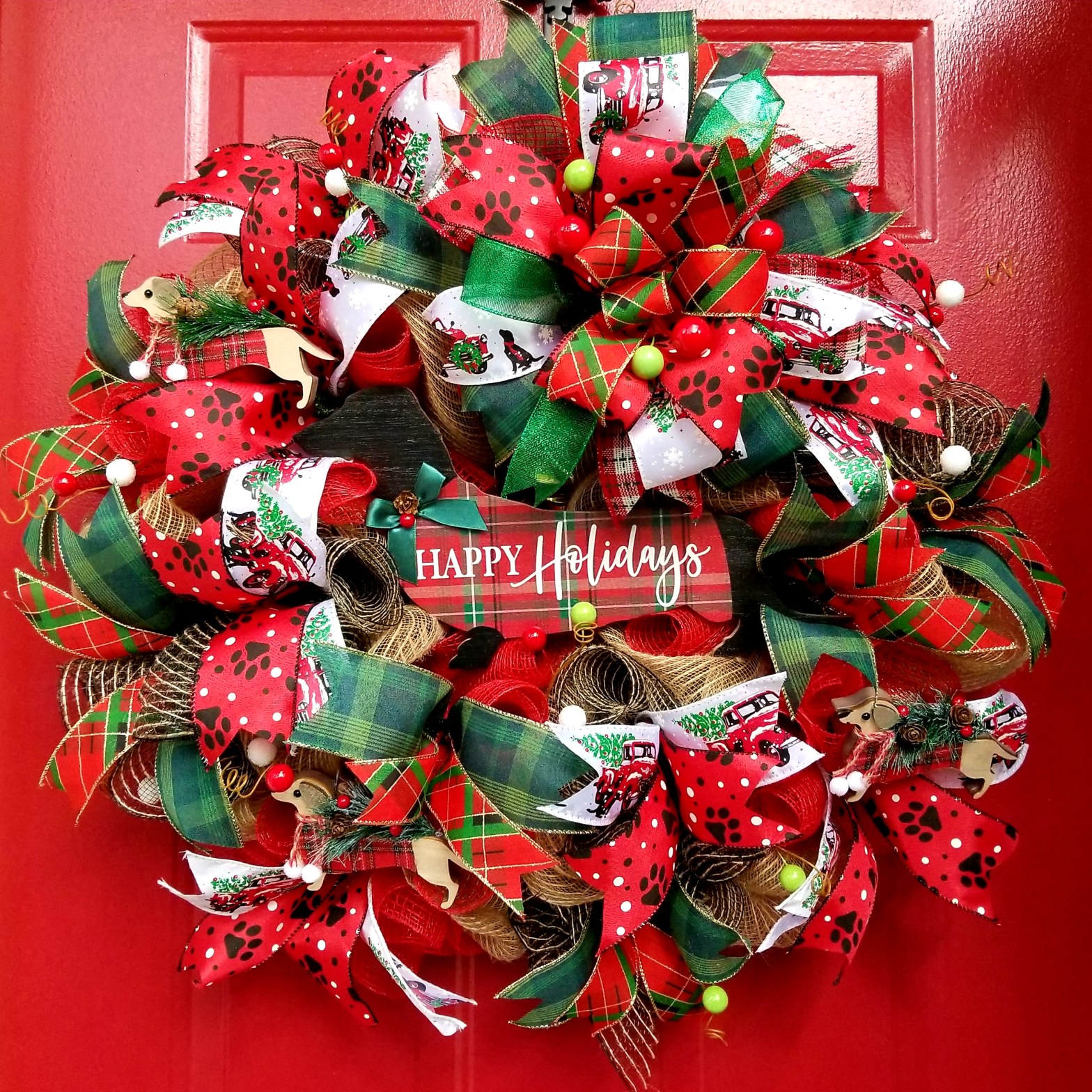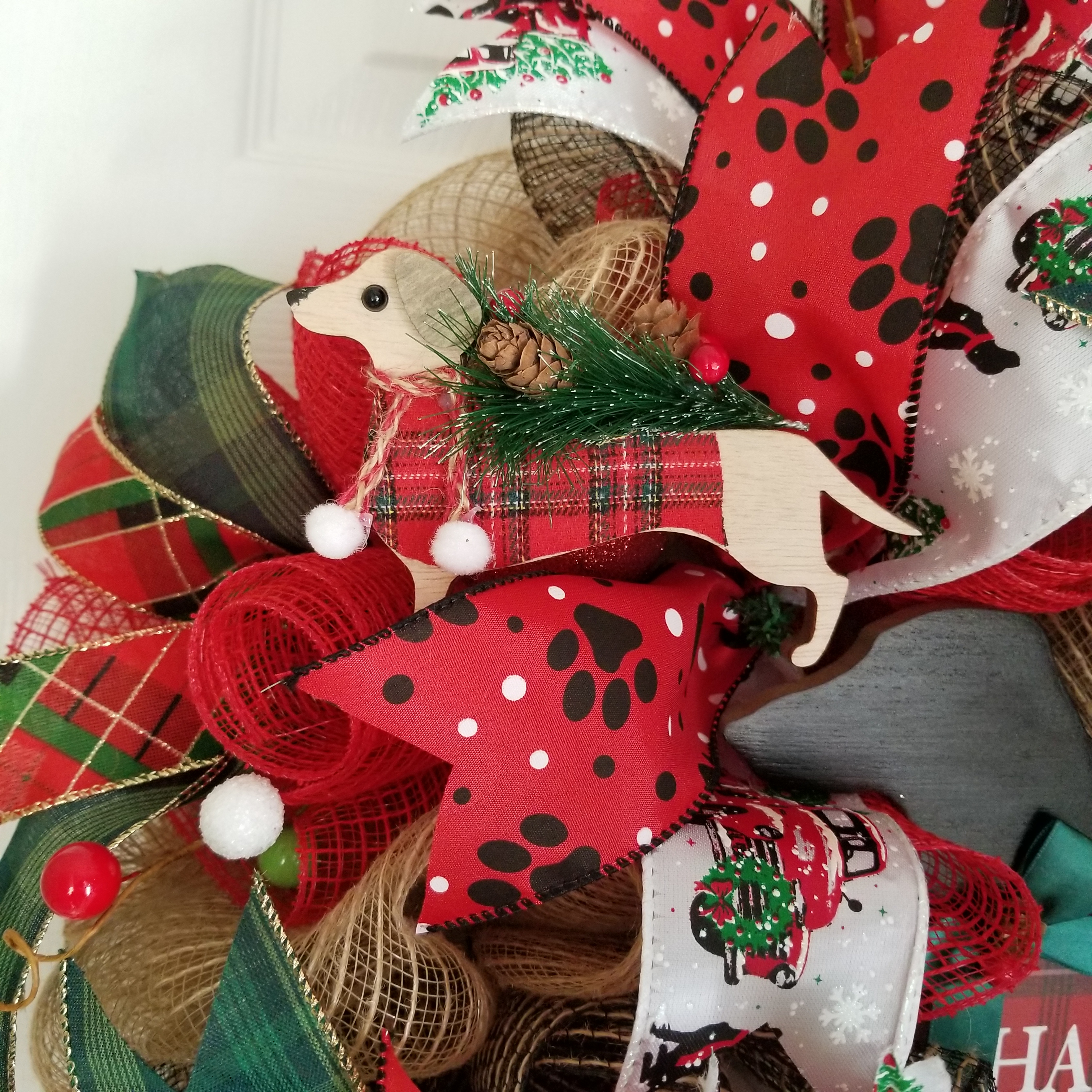 Why the story? I found this adorable sign at #biglots of a black dachshund dressed in plaid for Christmas. This find immediately sent my thoughts to Jasper. So of course I had to purchase it! Then I found these adorable dachshund ornaments. Yep, purchased them, brought my treasures home and began to design a Dachshund Christmas Wreath honoring my first pet, Jasper. I’m loving it!