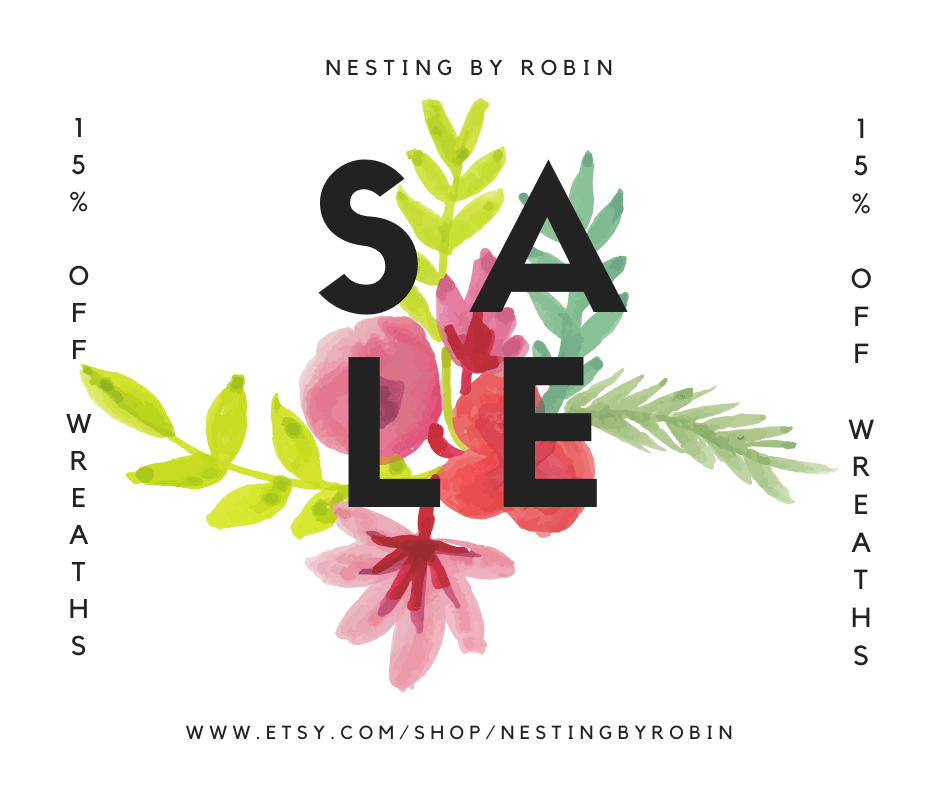 What’s on sale? All ready to ship Spring, Summer, Fall and Winter/Christmas wreaths are on sale. This does not include custom made wreaths. They are all mark down 15% plus FREE SHIPPING. Who doesn’t like free shipping, right? That alone is big savings these days!