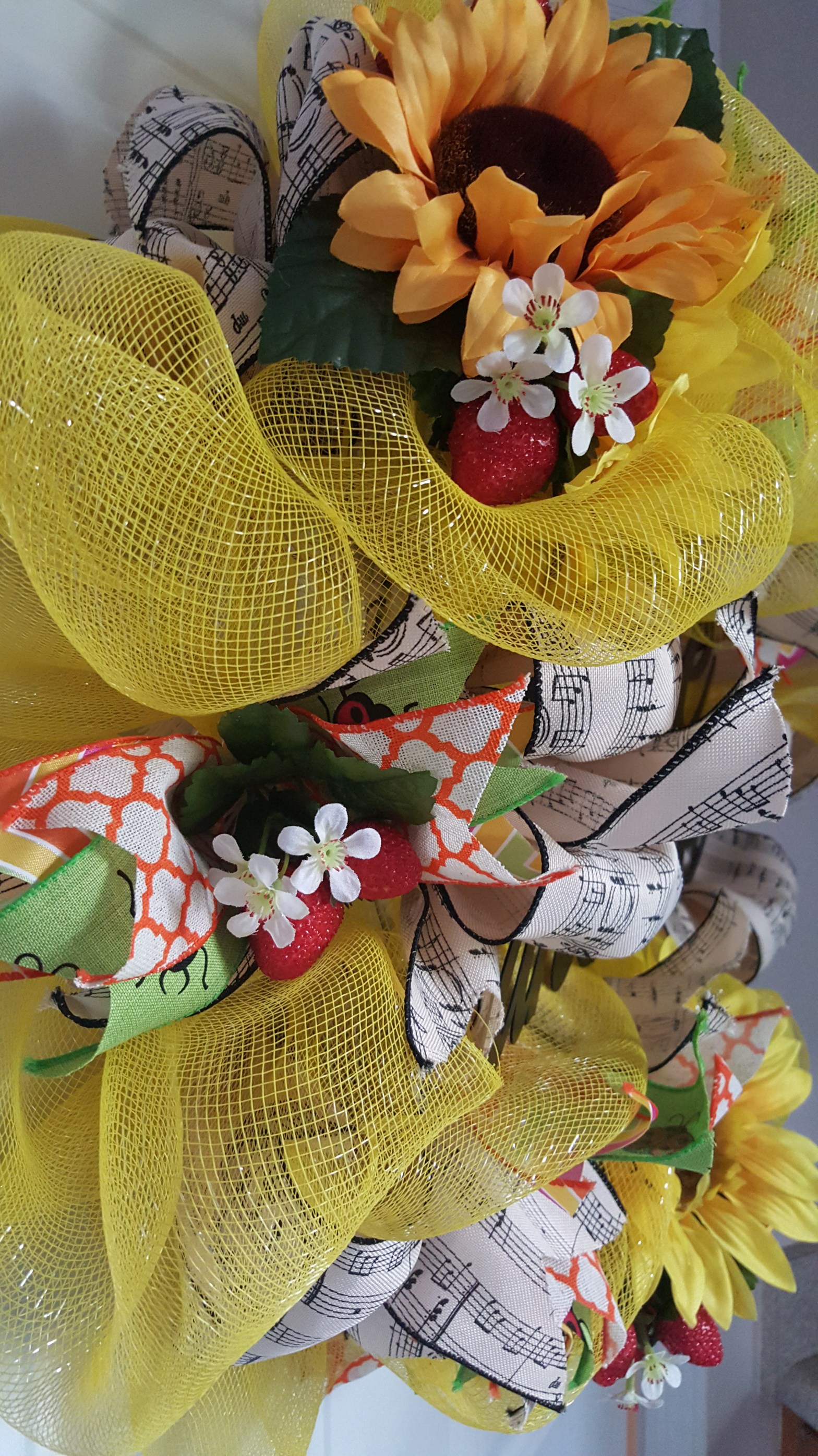 I thought I would post pictures of the latest finished project. A friend showed me a picture of a spring wreath and placed an order. It took 120 pieces of crocheting and sewing to complete it. However, it was worth it because she loves her wreath! She is a very special lady and I am so happy I could do this for her. Yes, she requested the wreath to be made in her favorite color…orange.