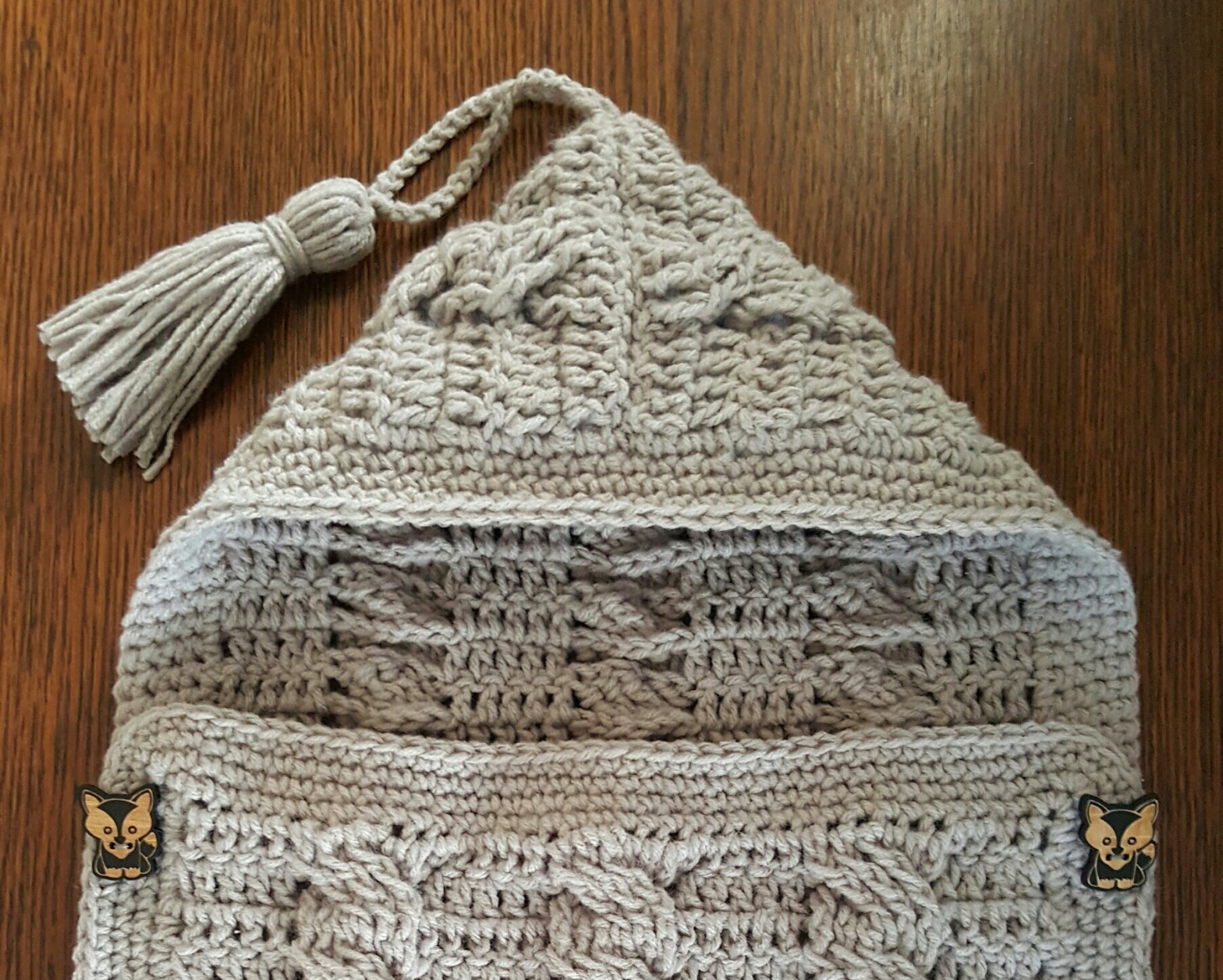My second project is this adorable baby bunting cocoon.  This is new to NBR’s inventory, however I believe it will become popular.  It is soft and will keep baby warm while sleeping or being cuddled by mommy or daddy.  The cocoon can be made unlined or lined.  I’m planning to line this one with a very soft, light weight fleece in a shade of blue.  Don’t you love the hoodie!  I found this pattern from Bag-O-Day Crochet.