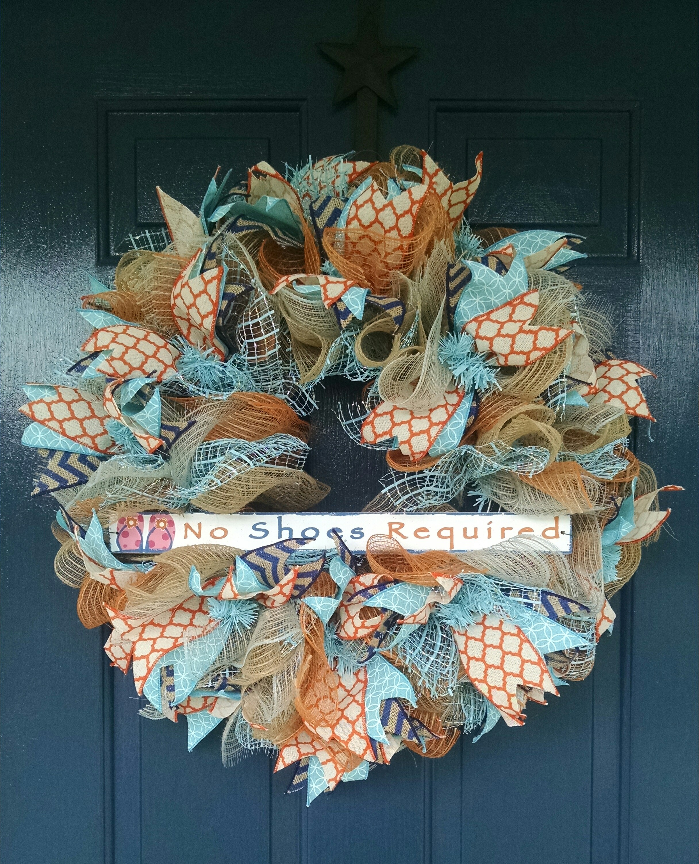No Shoes Required Burlap/Poly Mesh Wreath $60