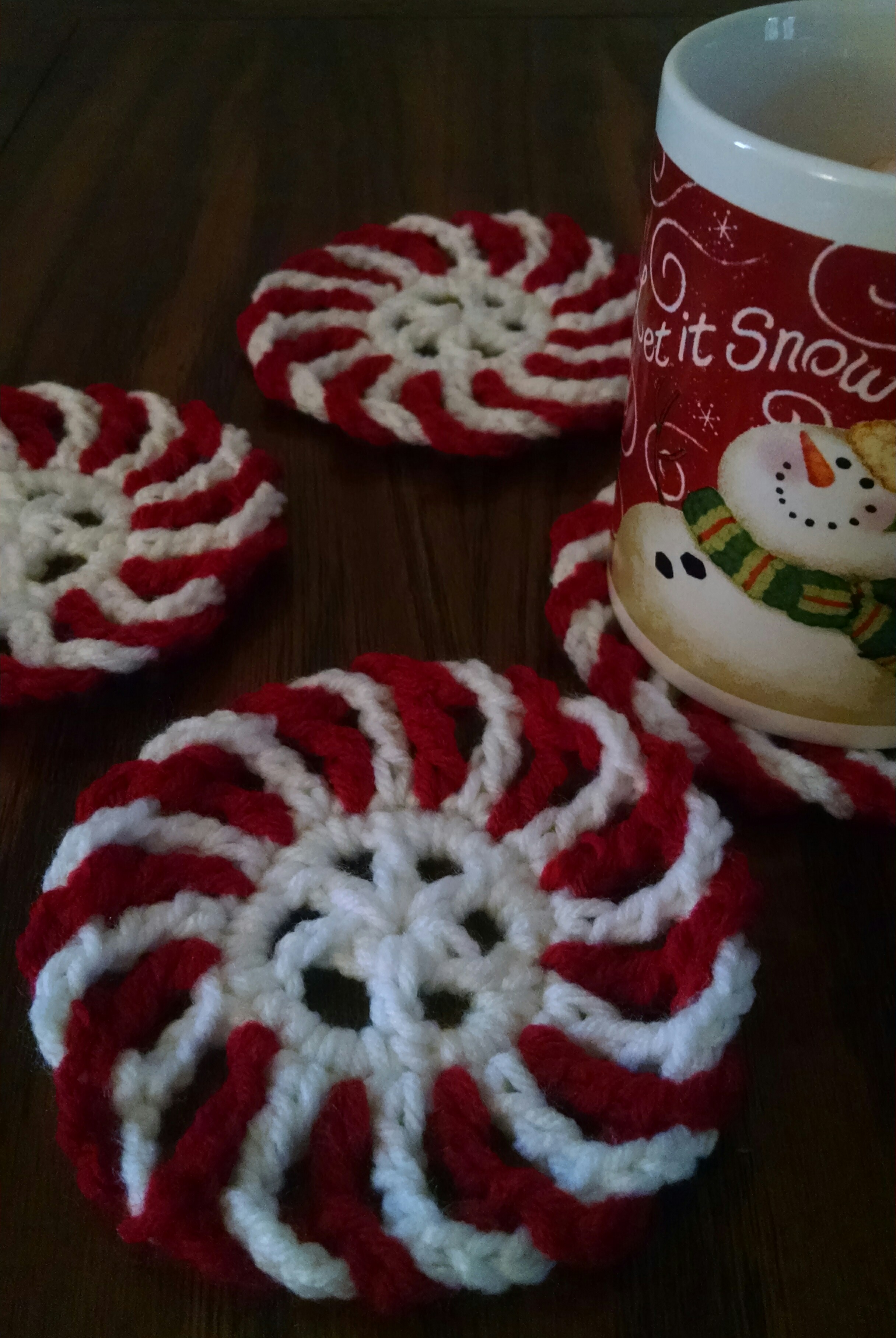 Previous Image Next Image Peppermint Coasters Peppermint Coasters $5 for a set of four Red/White or Green/White
