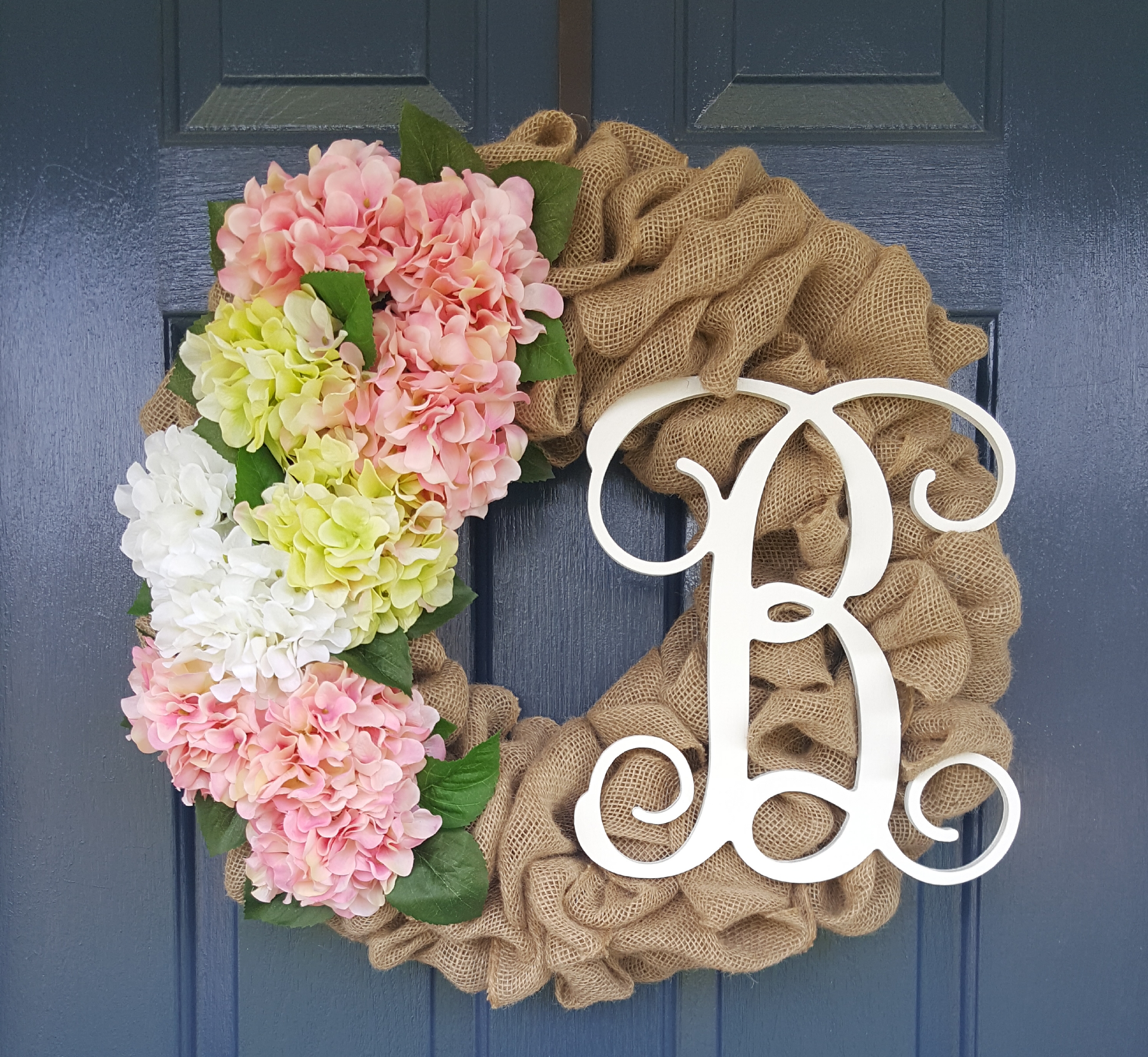 Previous Image Next Image Spring Burlap Spring/Summer Burlap Wreath 20 -22″ Burlap Wreath, hand painted initial, florals. Order only.