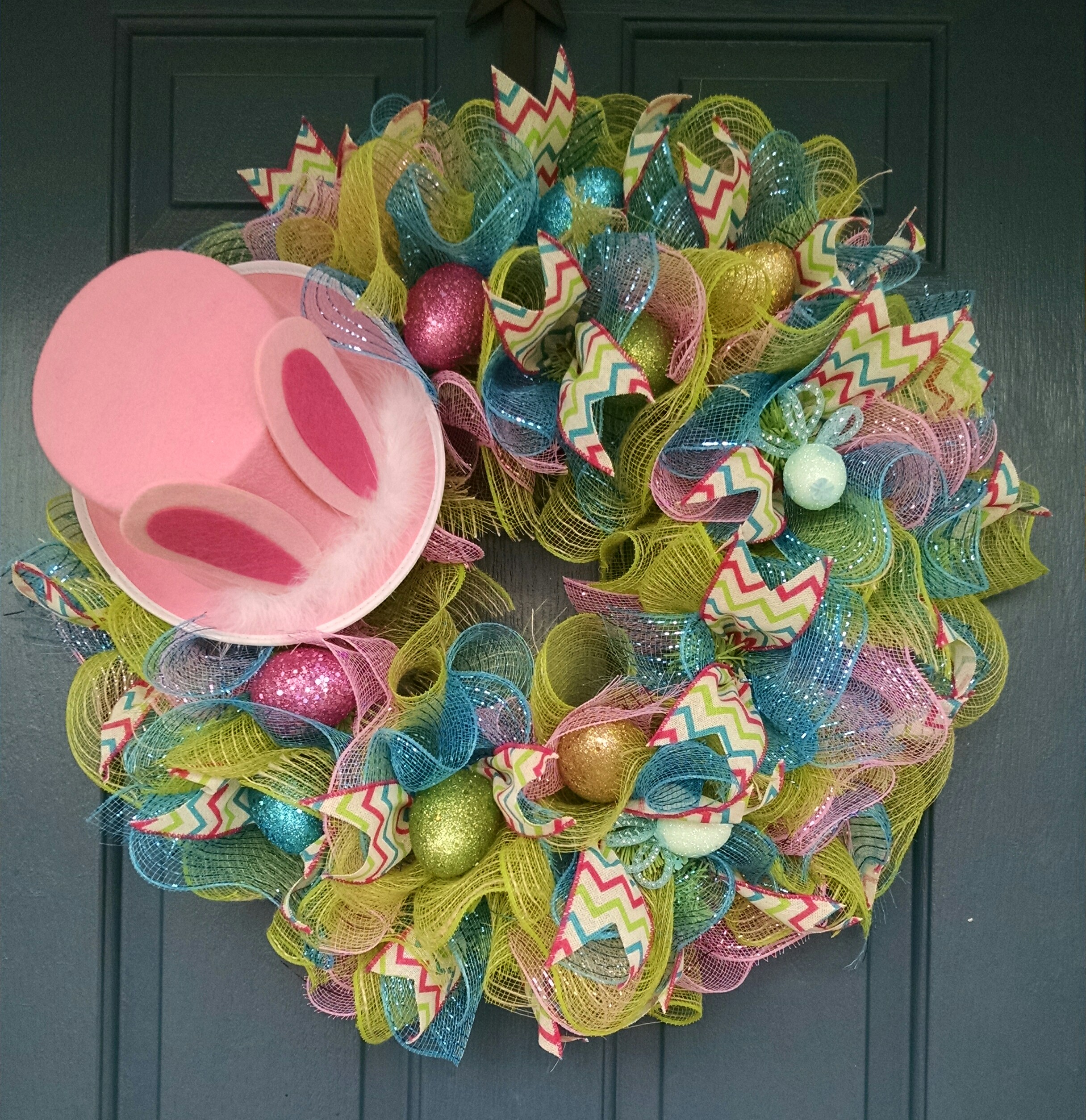 Top to the Bunny 24″w x 12″h wreath $80